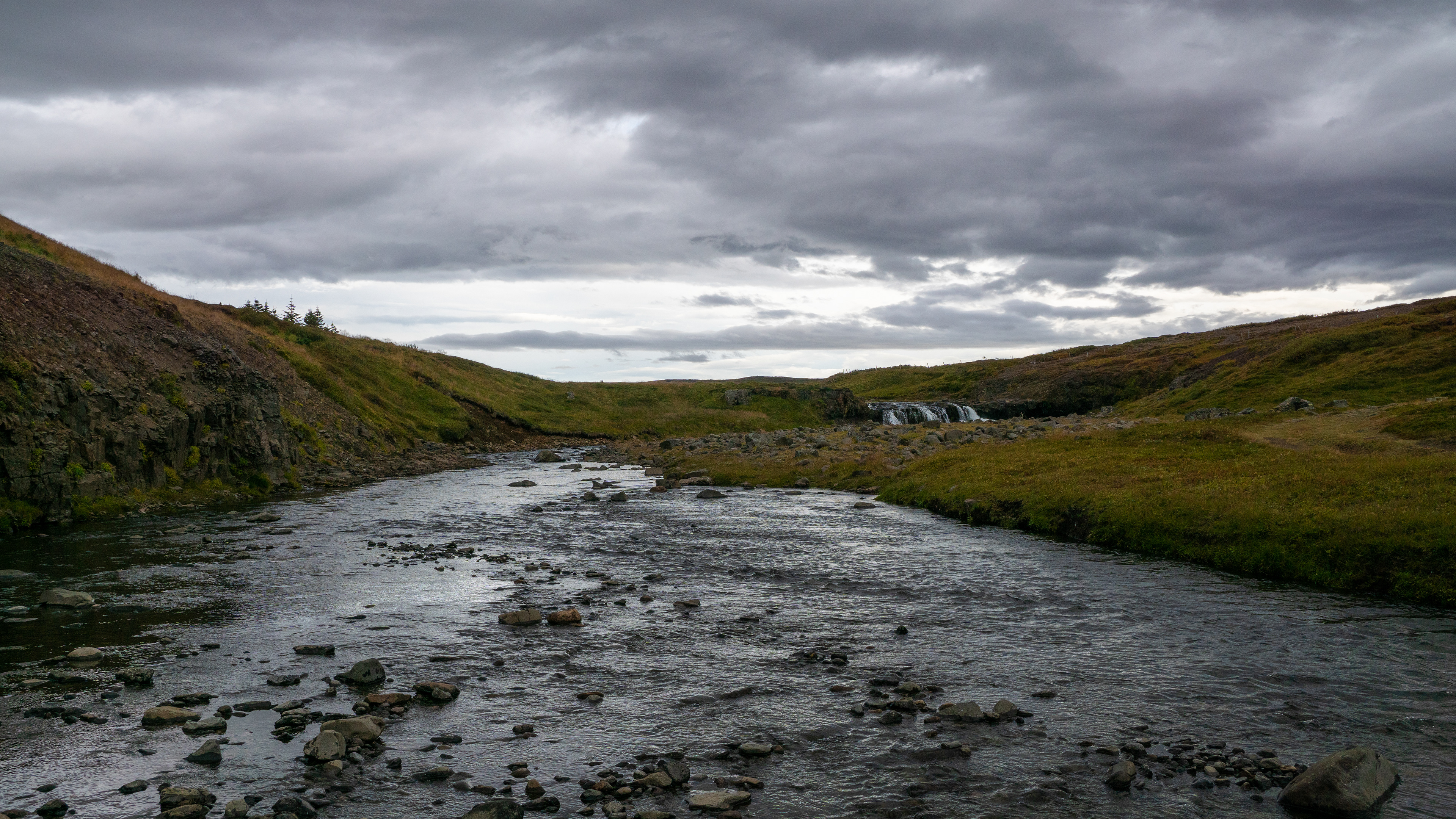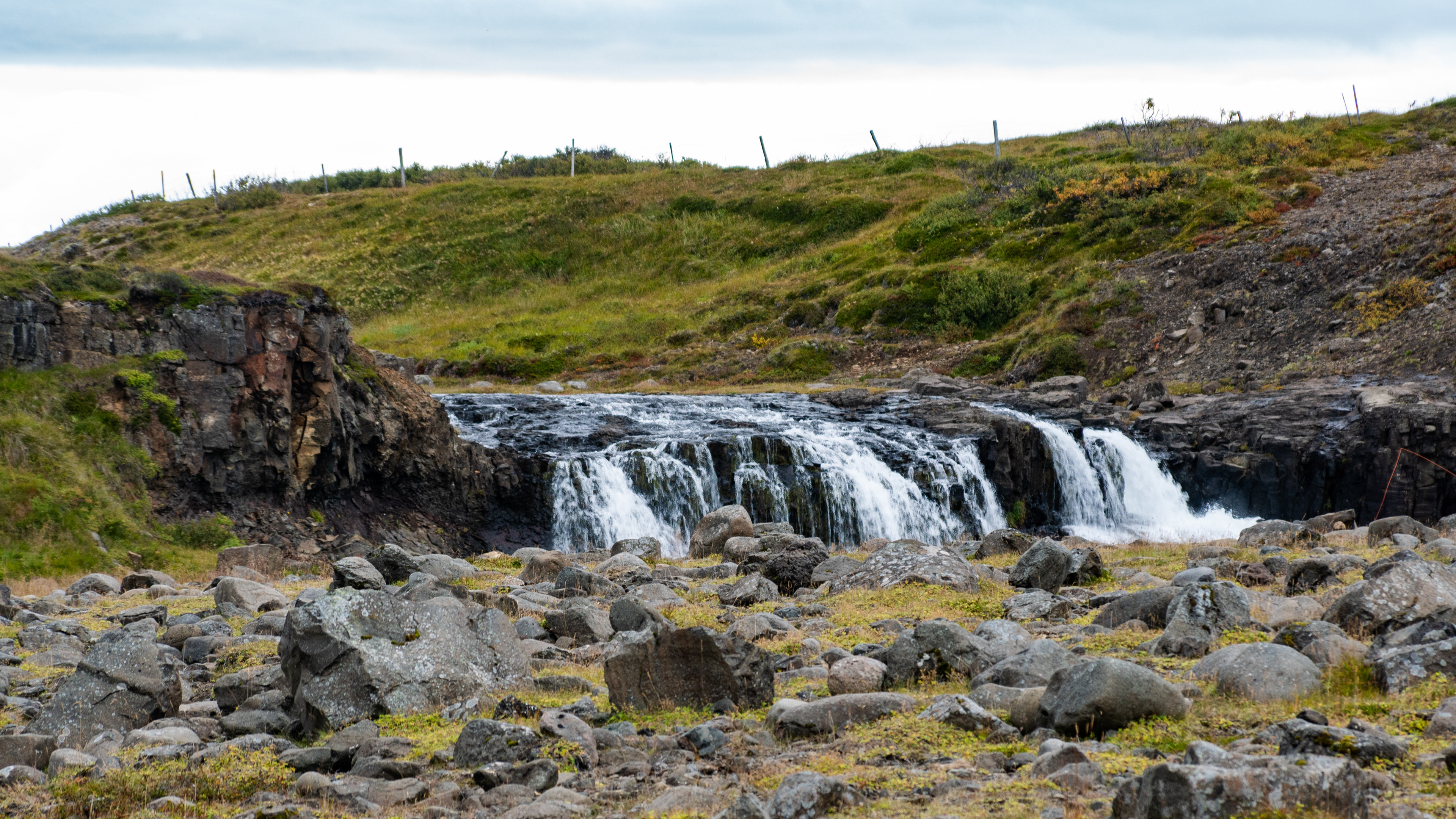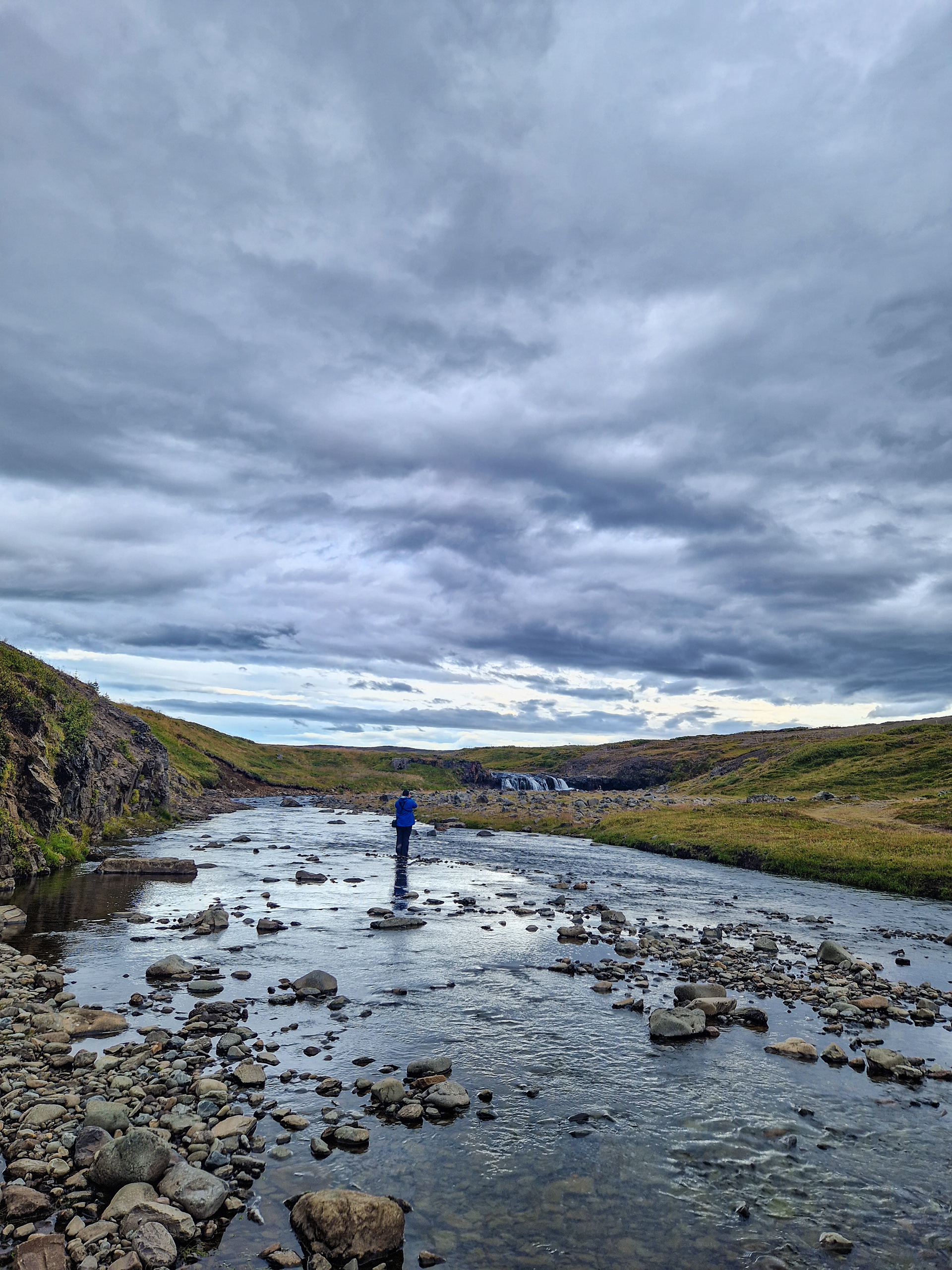 So unfortunately there were no way getting to the waterfall and since asking costs nothing, we got into conversation with the woman at SUV. She was here with her husband, who was fishing. They come from Akranes, which is about 90min away. They come here because they grew up near here and her husband is already fishing all day at the waterfall and has already caught a single fish. They probably stayed until late in the evening.