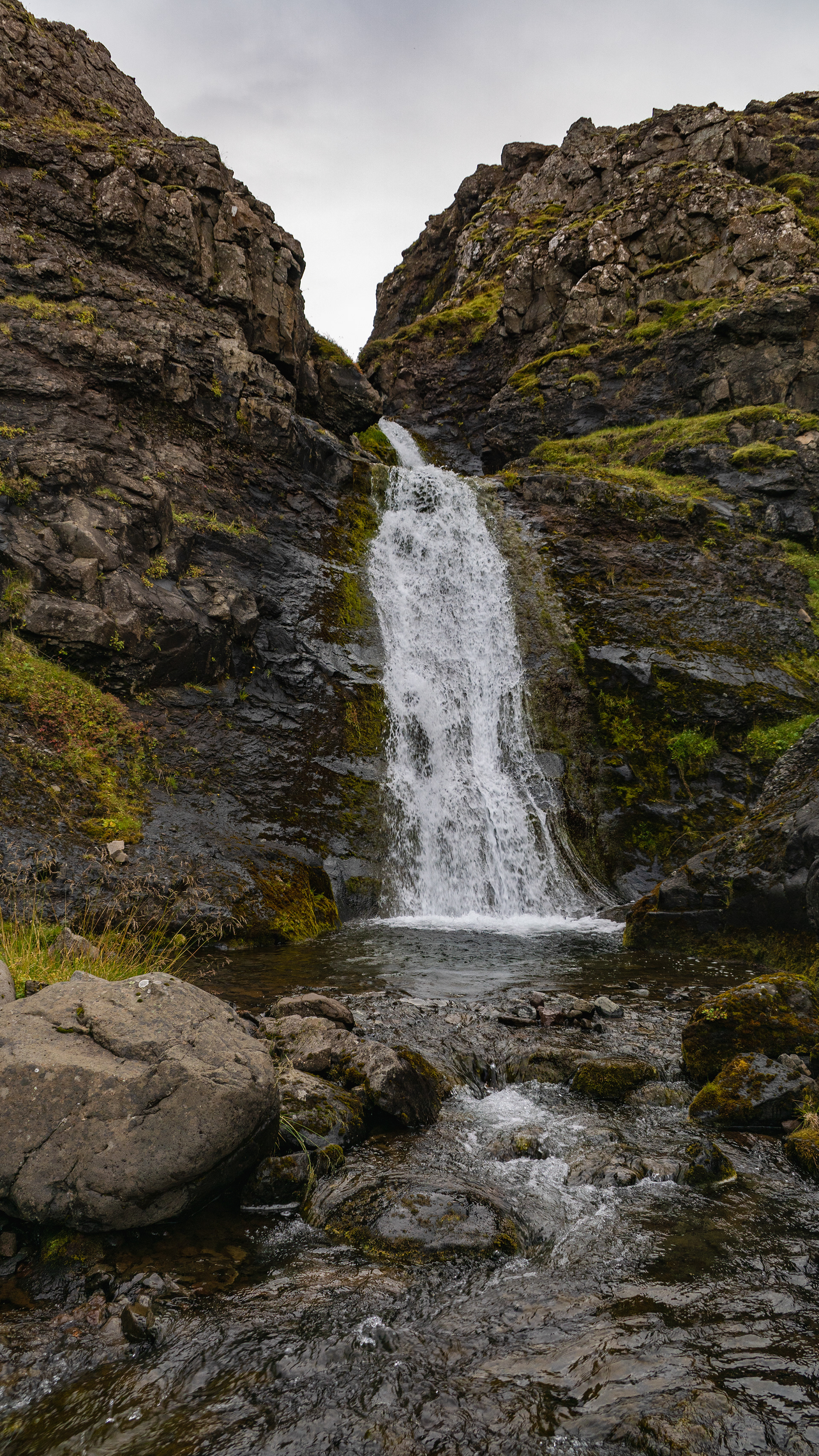 In order to get there unharmed, we first had to go around the sheep's treading mines in the meadow in front of the waterfall.