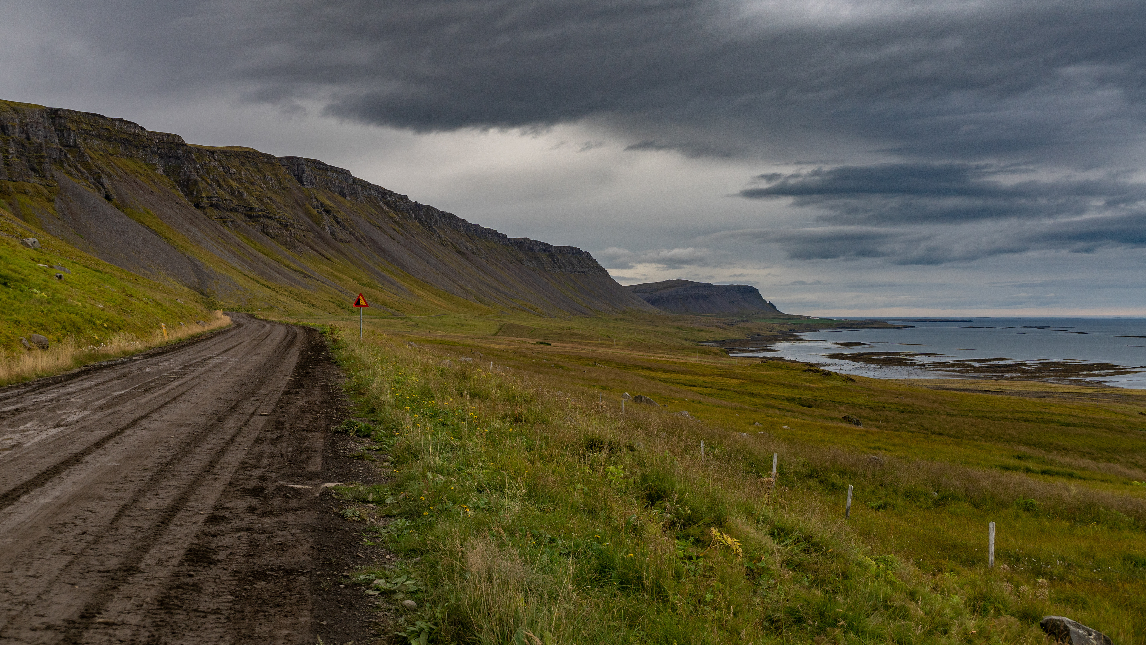 The further coastal section was then very unpleasant to drive. The previously loose, but still grippy surface, went seamlessly into a wet greasy road.