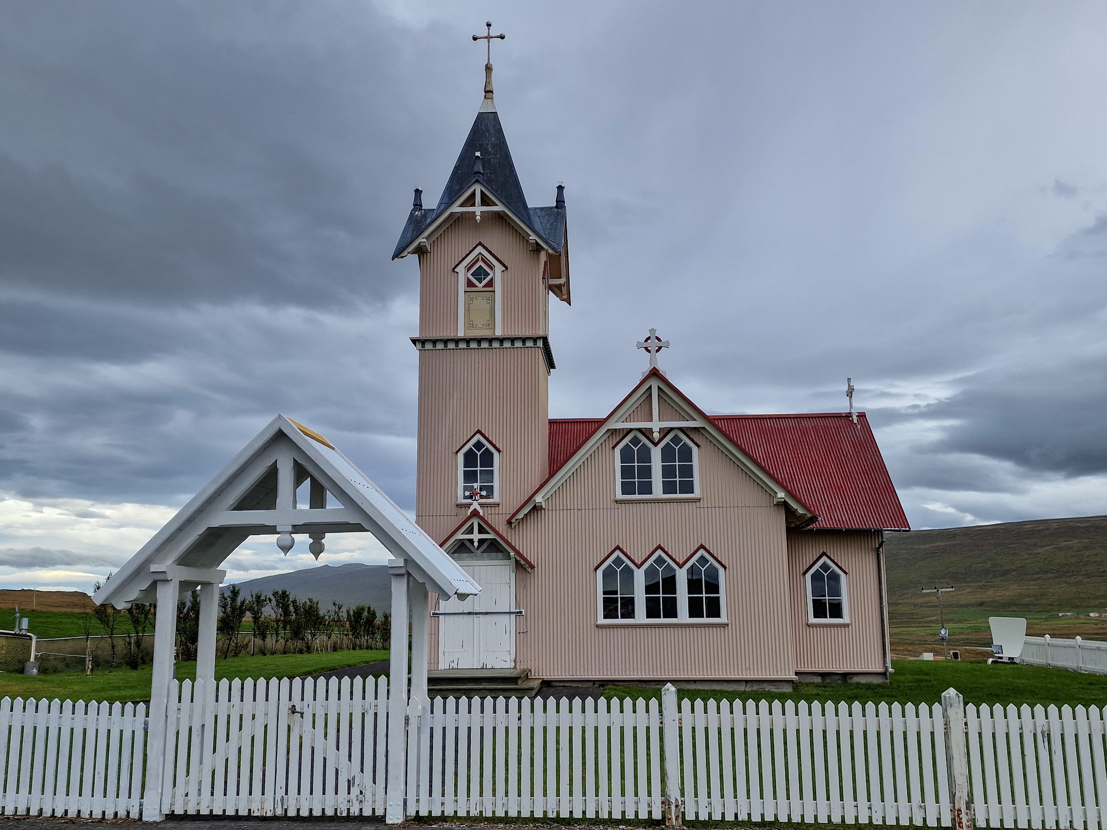 The only named destinations on the entire route were two churches. Actually three, but I discovered one only when we were already back home in Germany to catch up on the trip. And at the Staðarhólskirkja we were already. So there remained only the Hjarðarholtskirkja. The church is marked on Google Maps, but so far without pictures - that awakened the spirit of discovery.