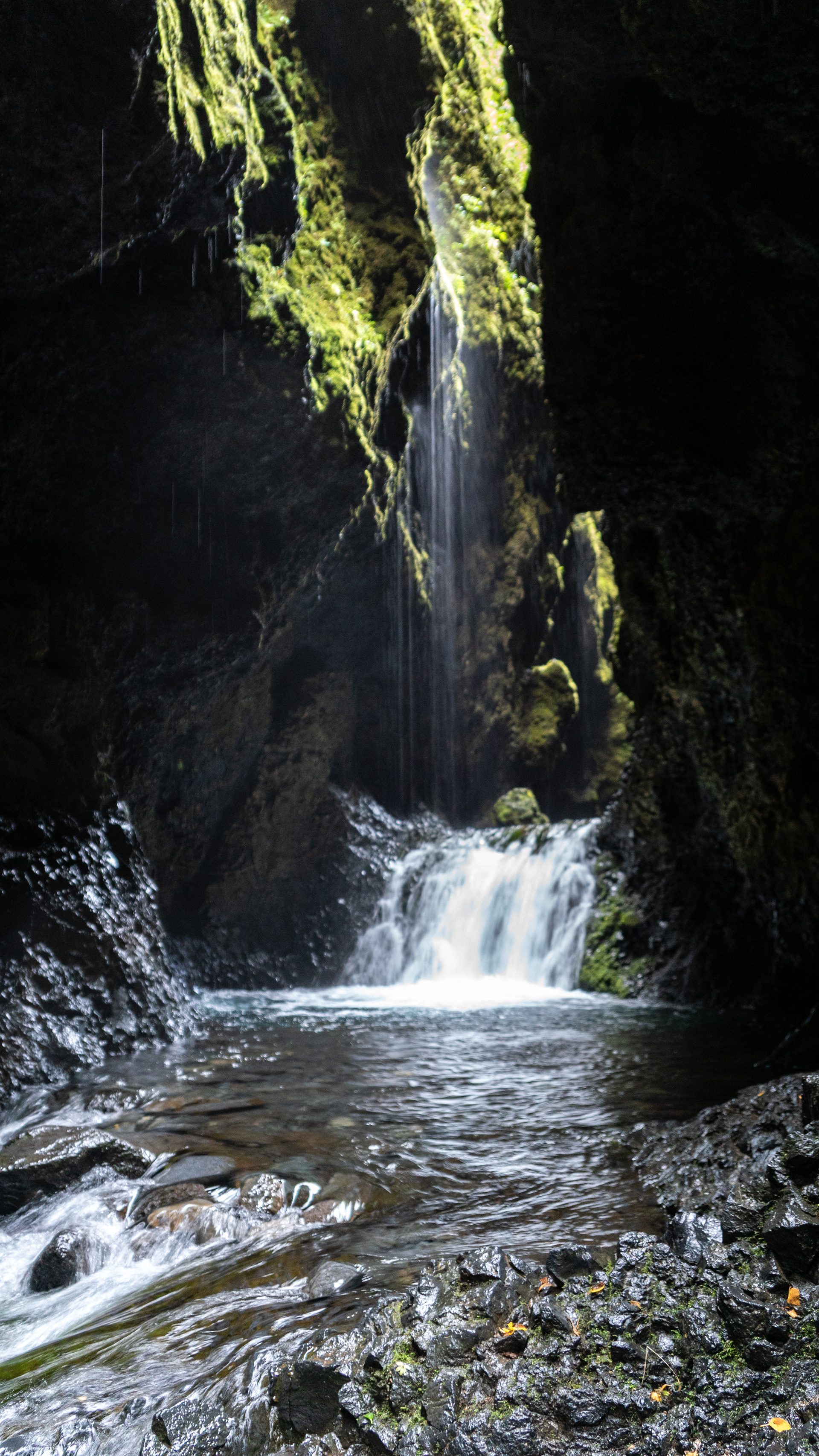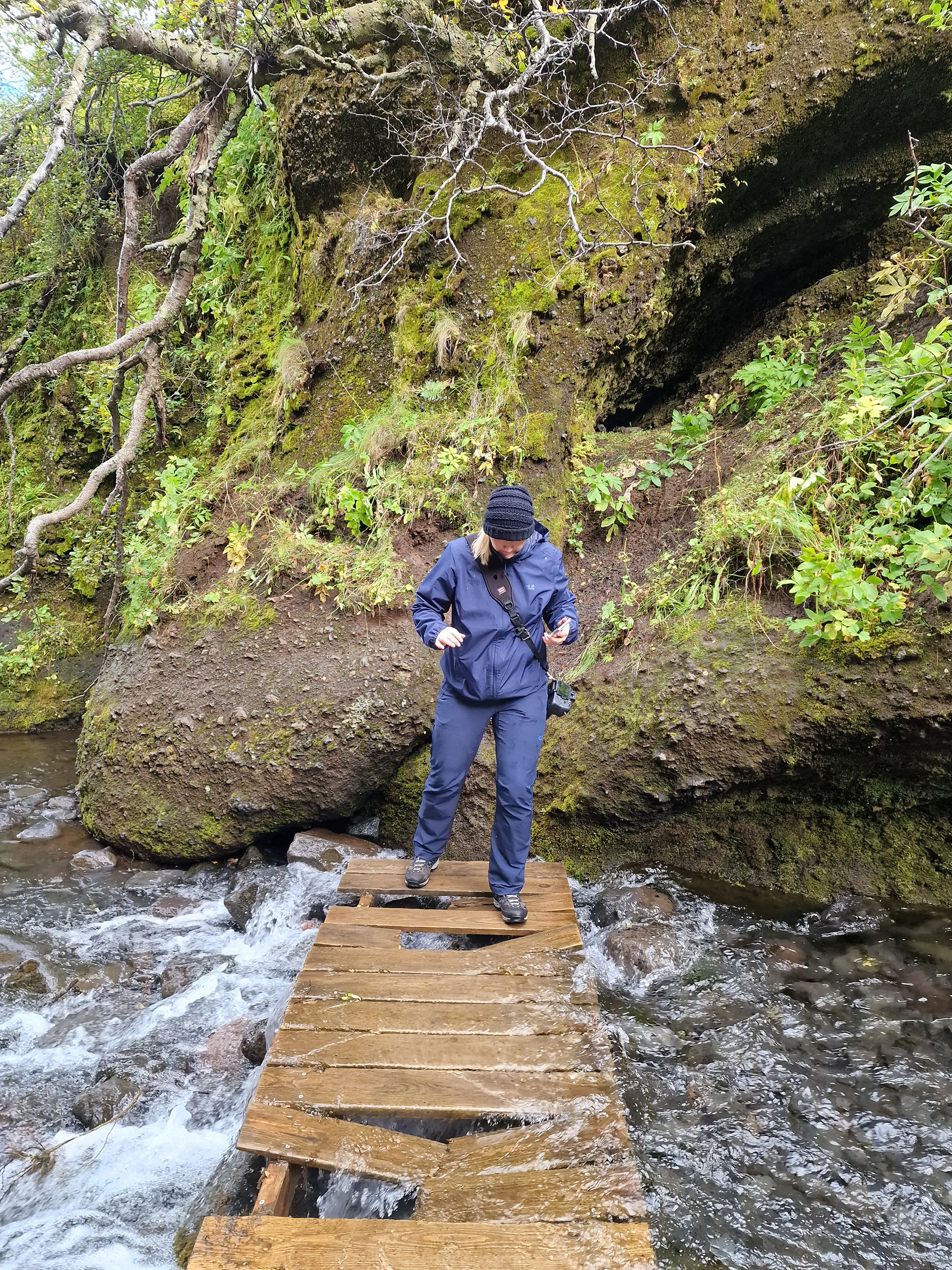 But to get to the big waterfall, we would have had to take off our boots and pants. The way went through a water basin, which would have been appoximately a half meter deep. The impregnation of the boots would have done nothing more.
