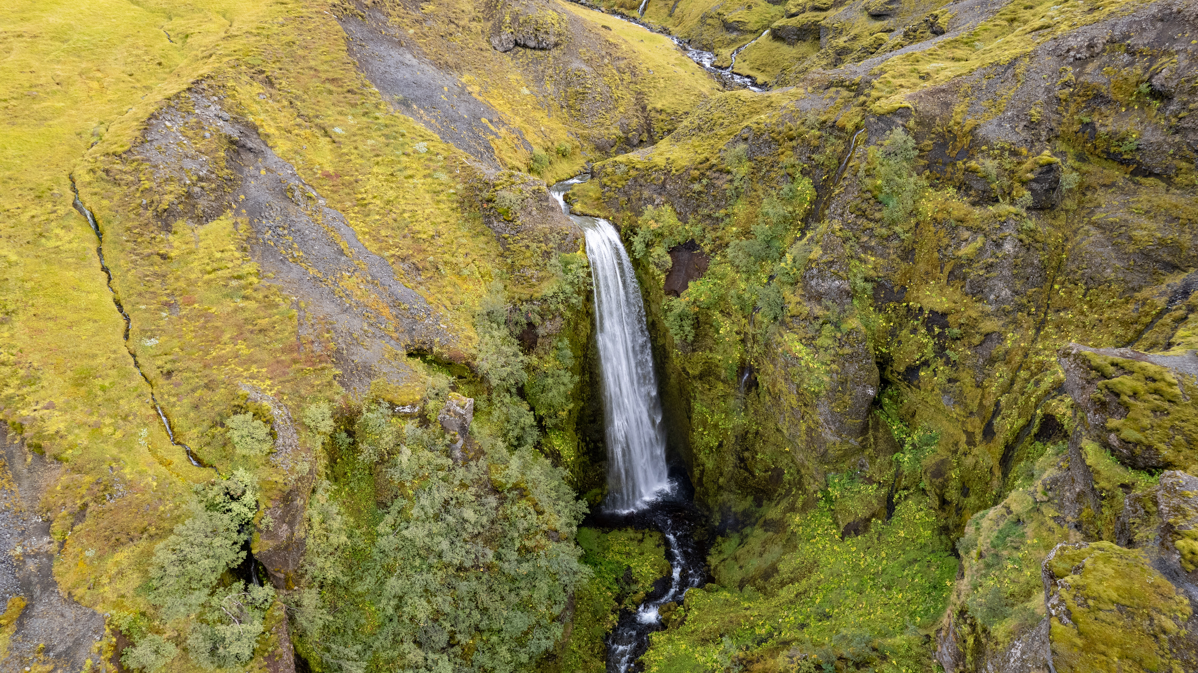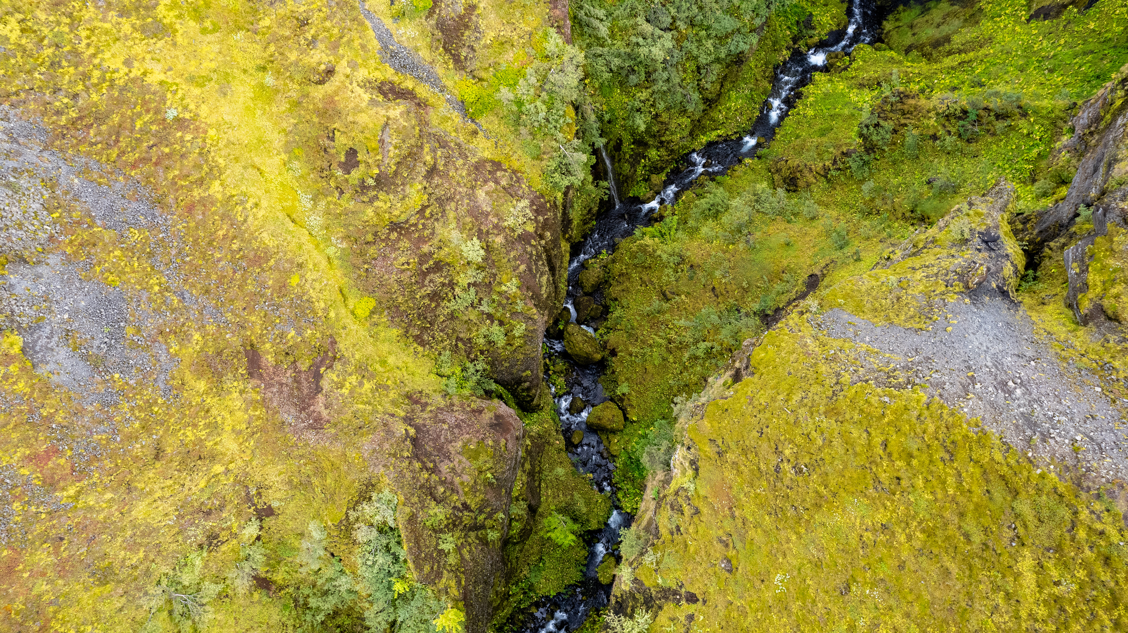 A gorge towards a waterfall, compared to all the previous places we visited, a real adventure. The gorge has a particularly strong vegetation, which can be seen well on the drone image.