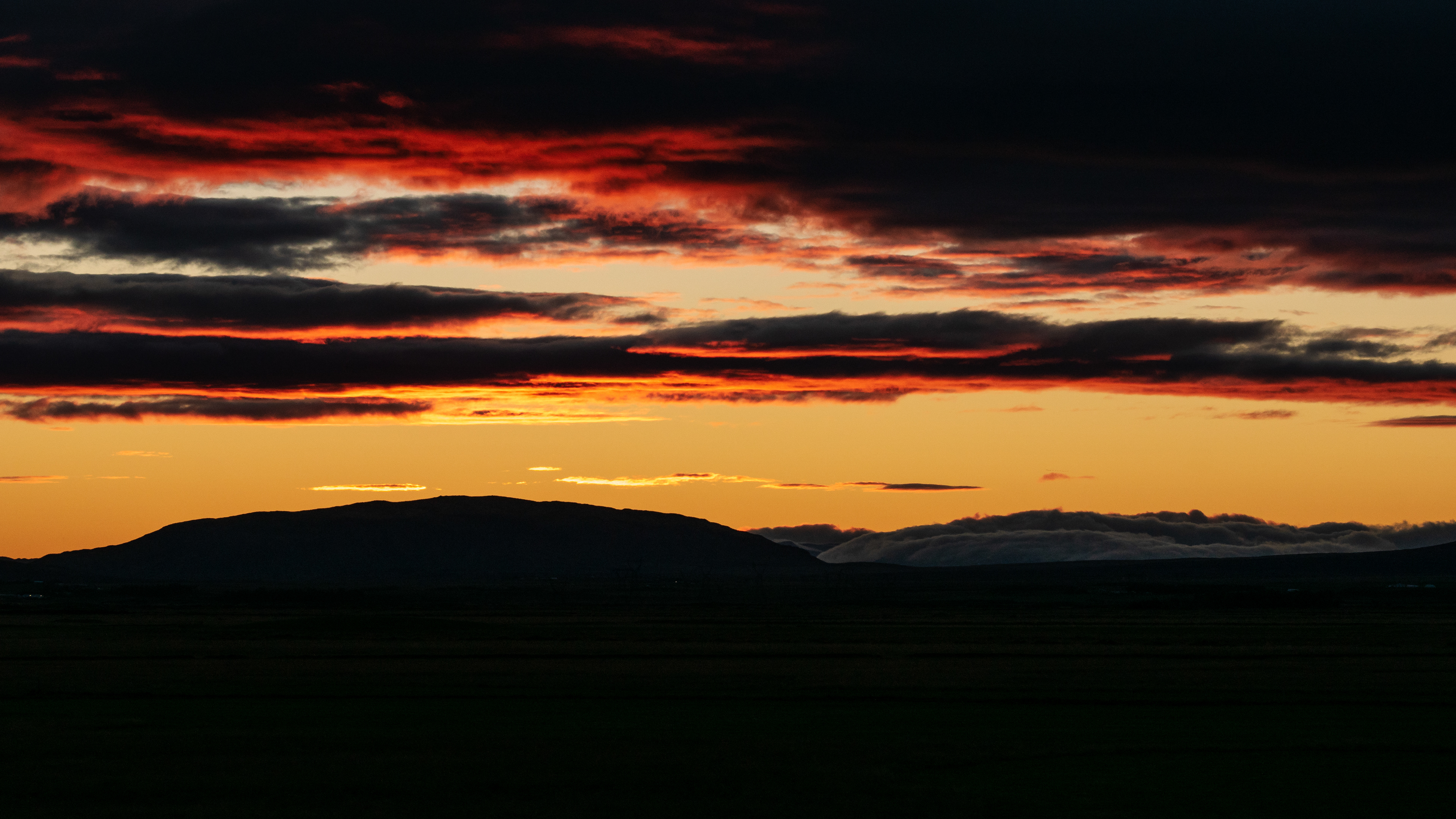 On the way back we were allowed to marvel at a spectacular sunset, the Hekla was colored by it in a red tone.
