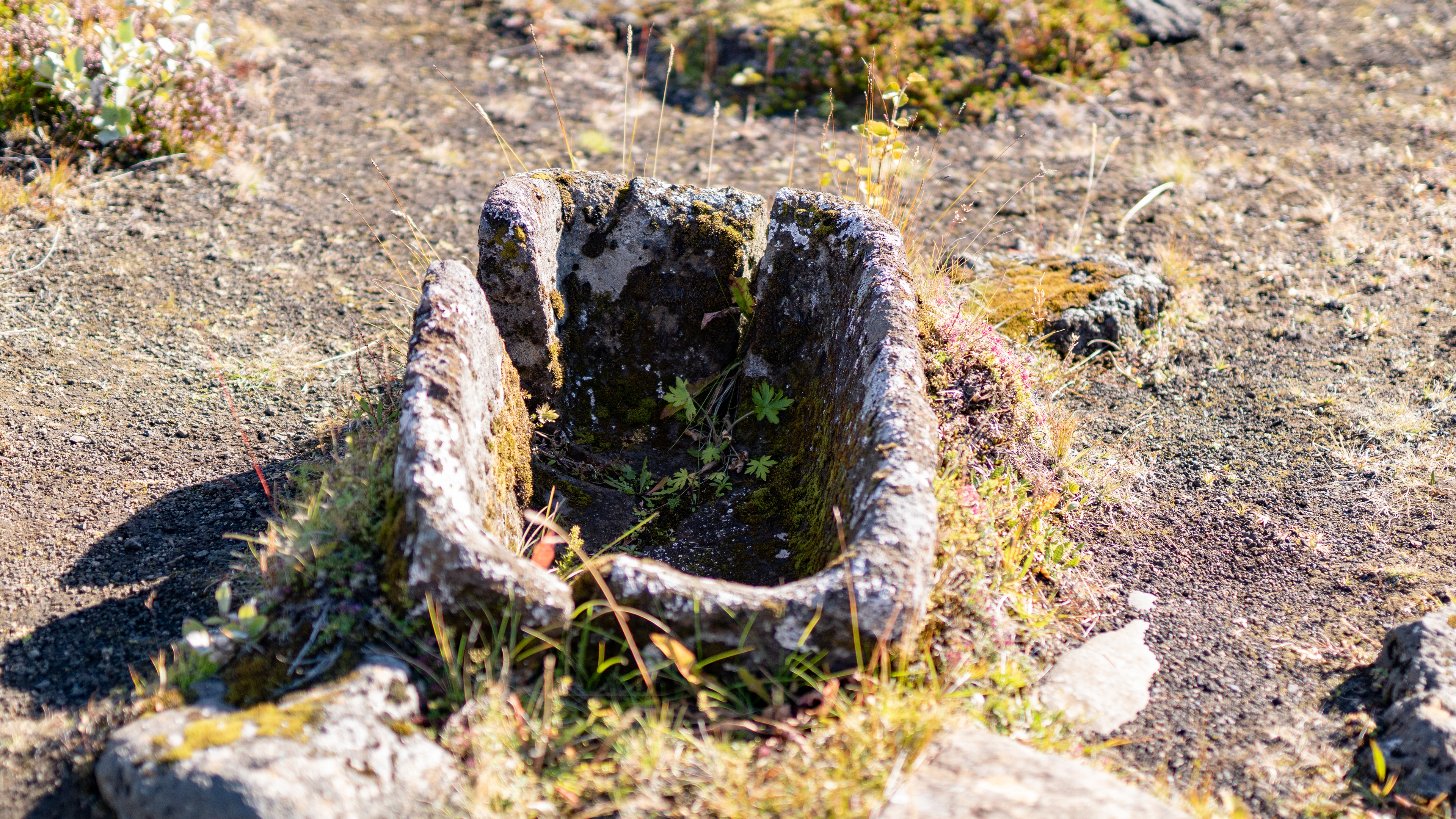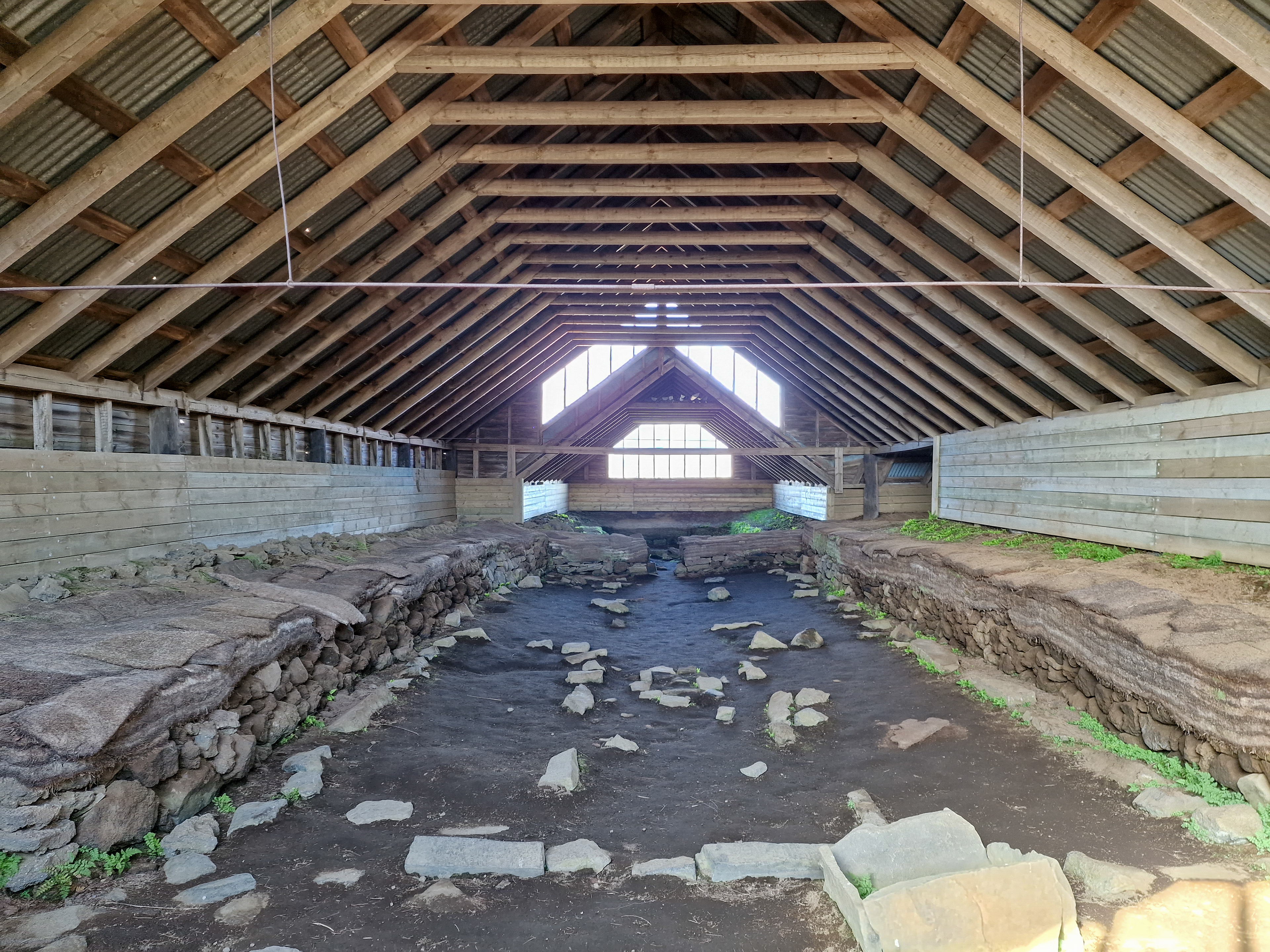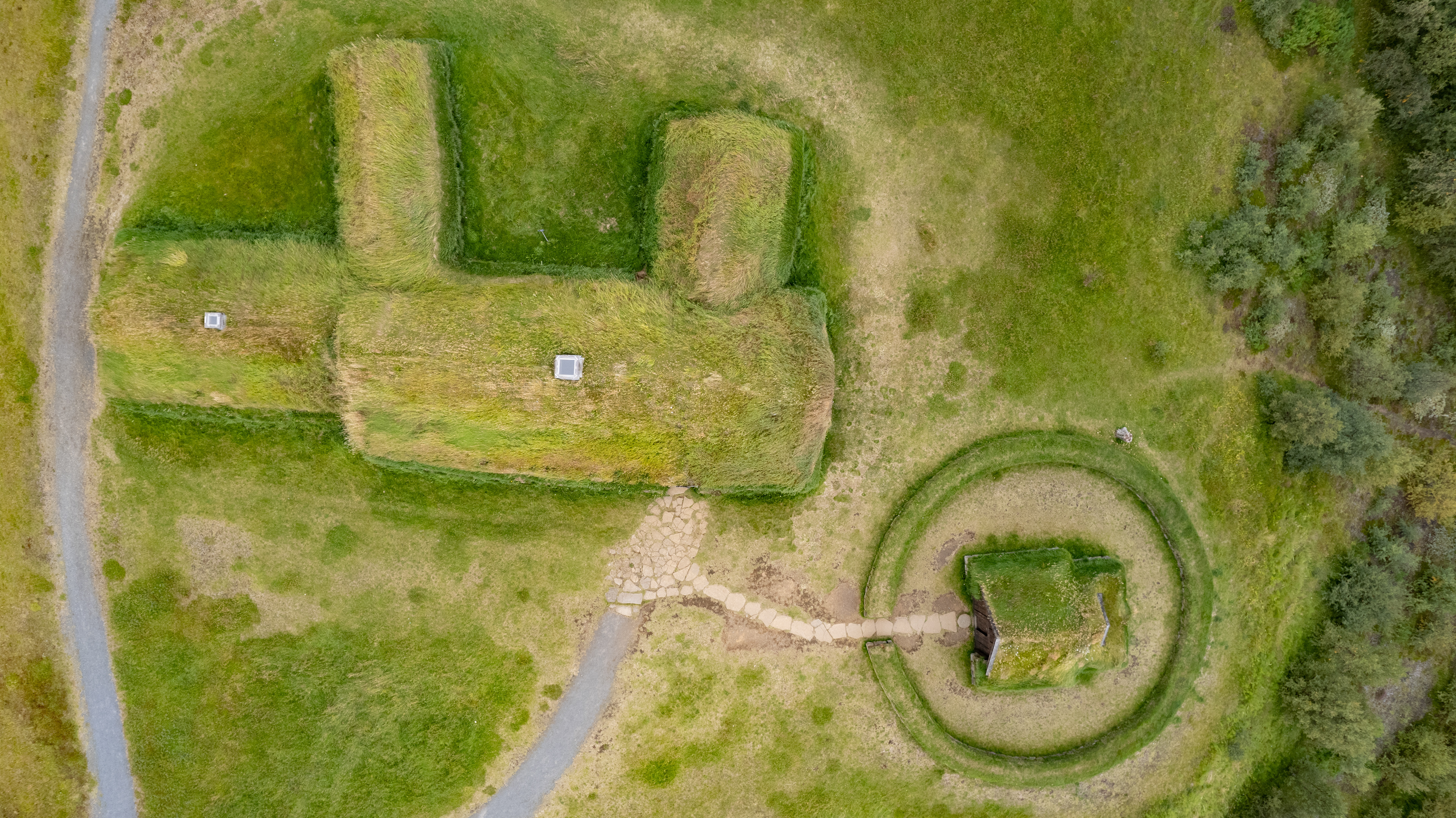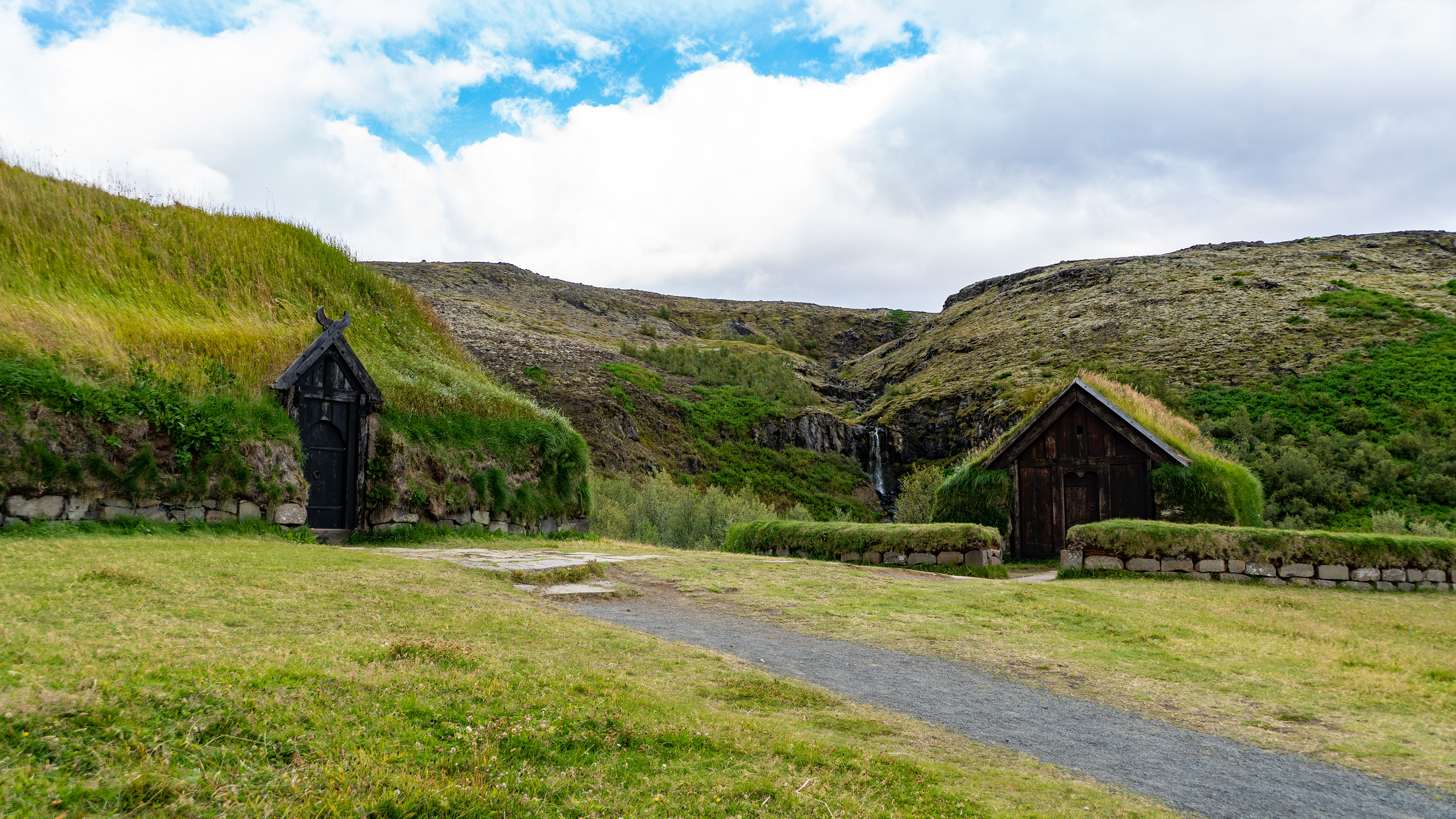 Auf unsere Rückfahrt ins Ferienhaus hielten wir dann noch beim Þjóðveldisbær, einer Nachbildung des Stöng mit kleinem Wasserfall im Hintergrund.