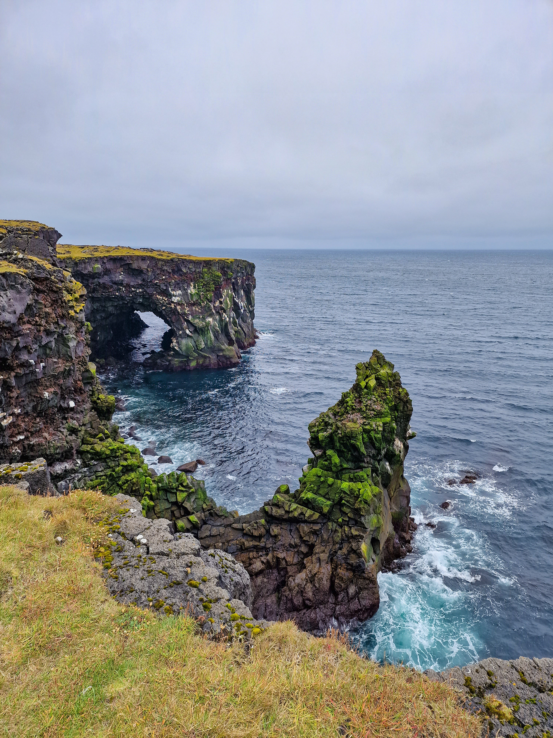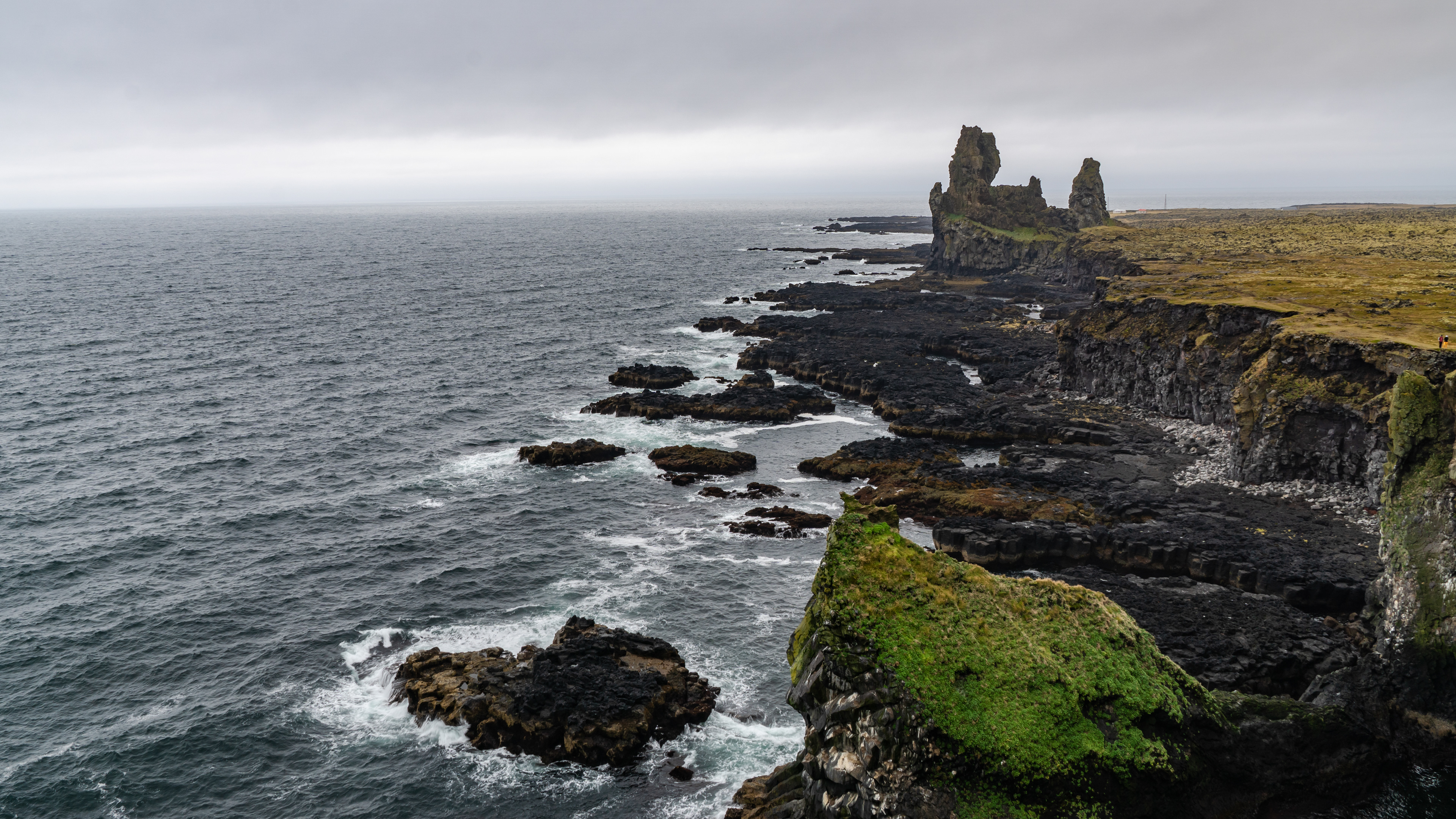 Nur wenige Kilometer nach dem verlassenen Gebäude hielten wir bereits bei den nächsten Klippen, von wo man einen Blick auf die beiden Felsnadeln von Lóndrangar hat.