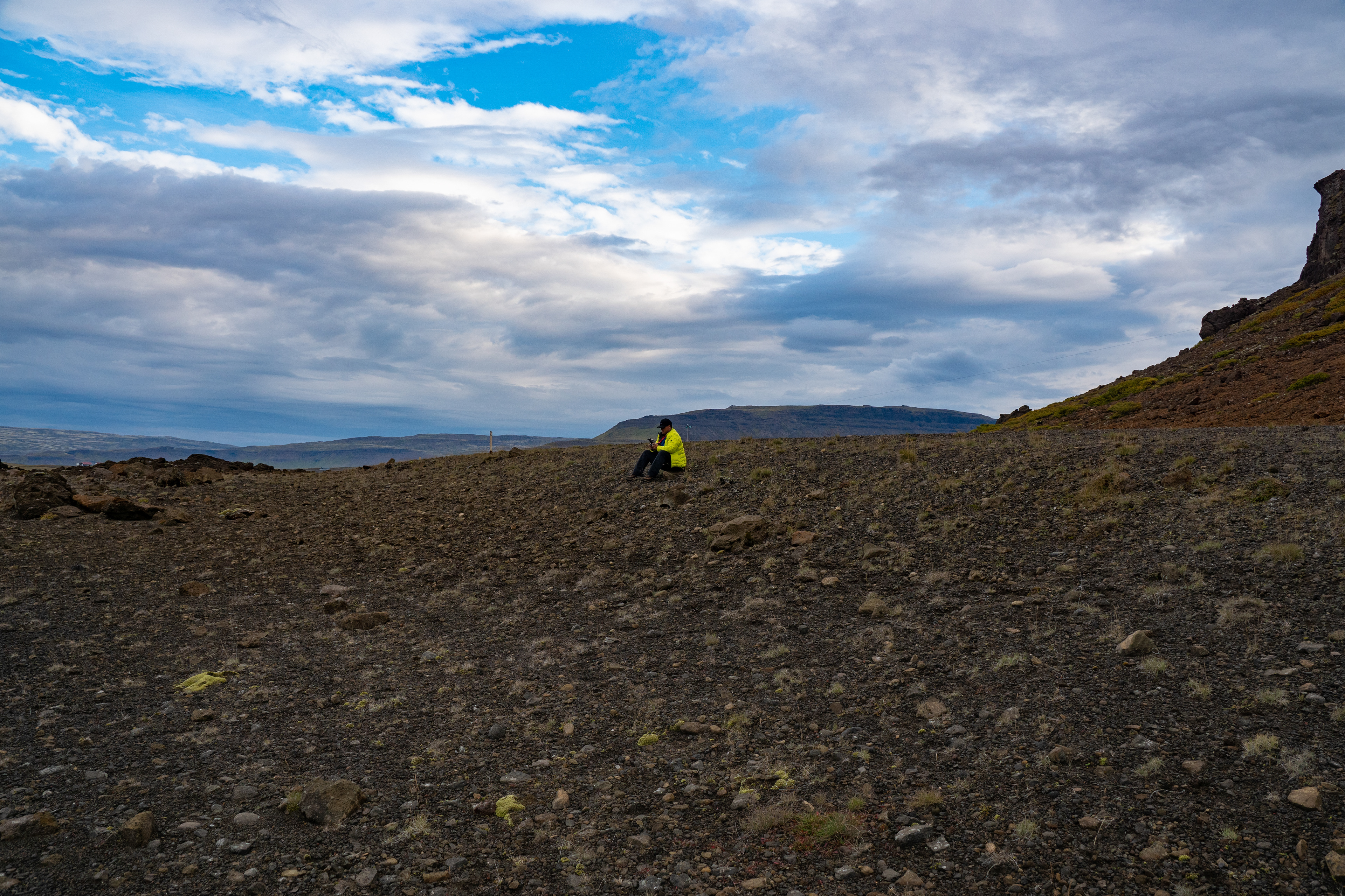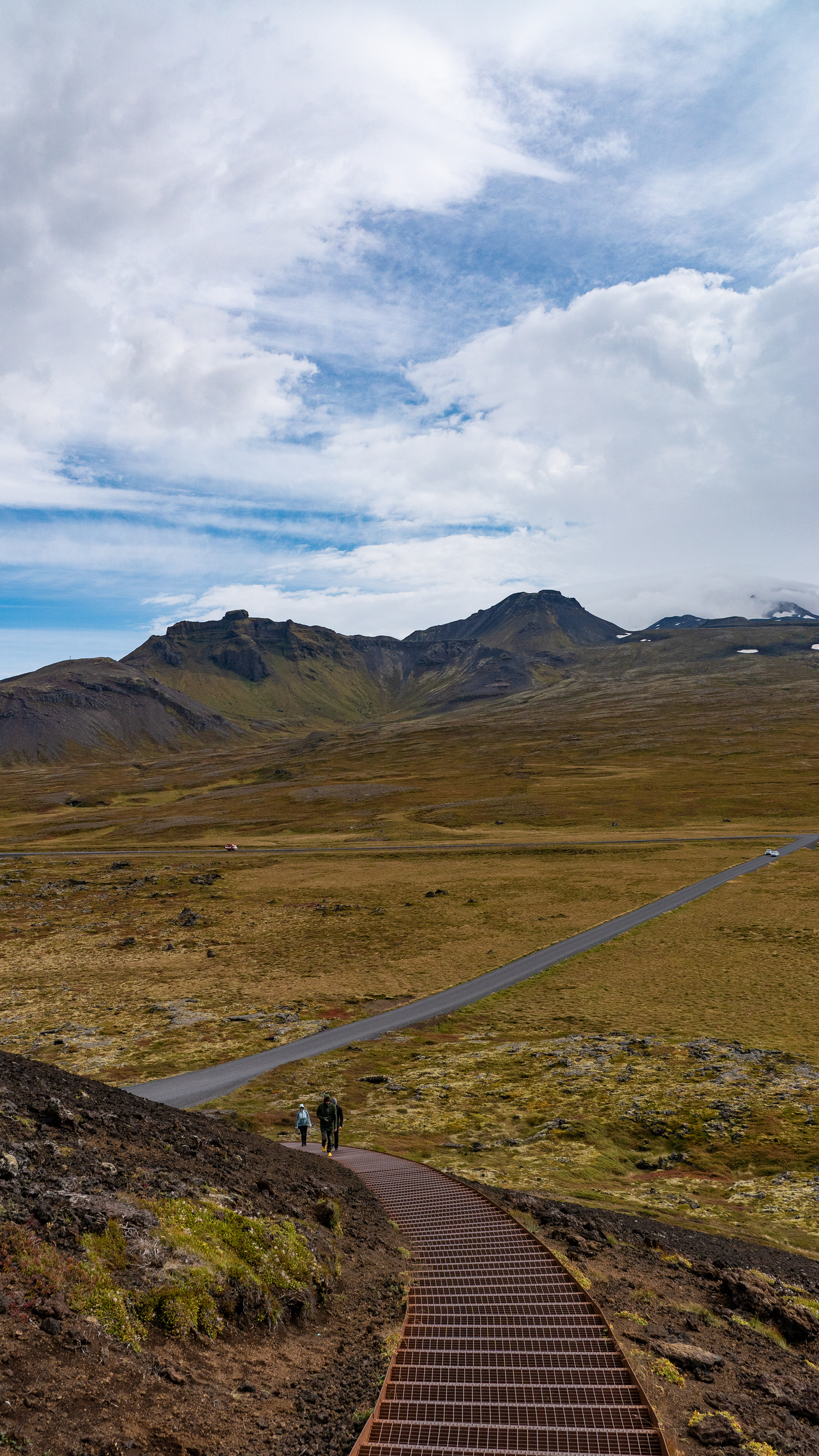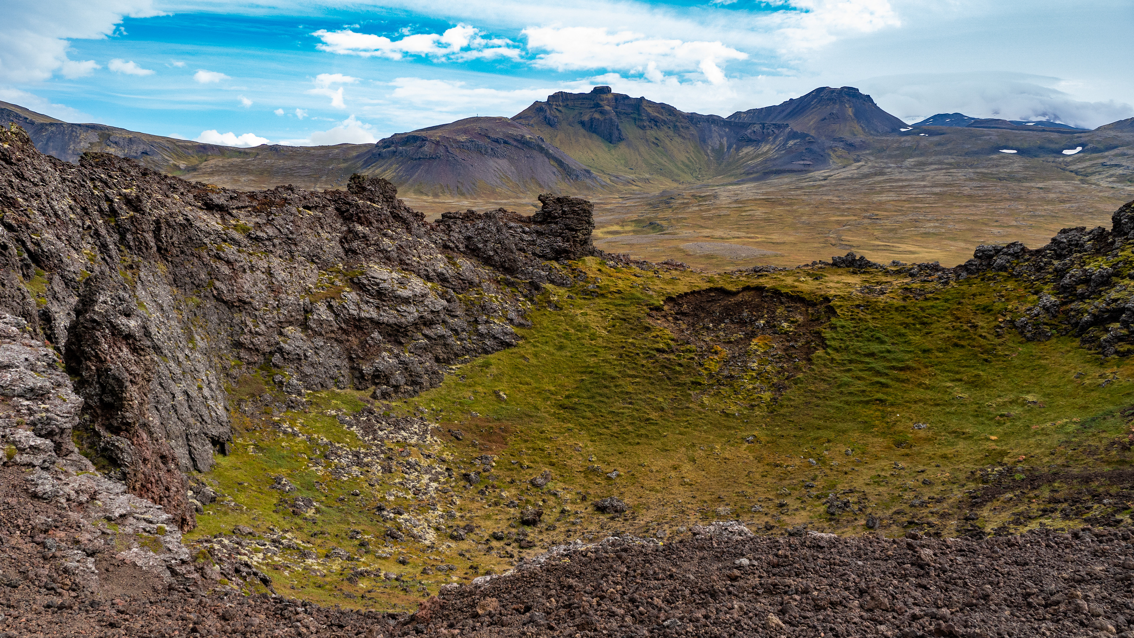 In unserem im Rücken und dem des Kraters, war heute erstmals ein Teil des Gipfels des Snæfellsjökull zu sehen.