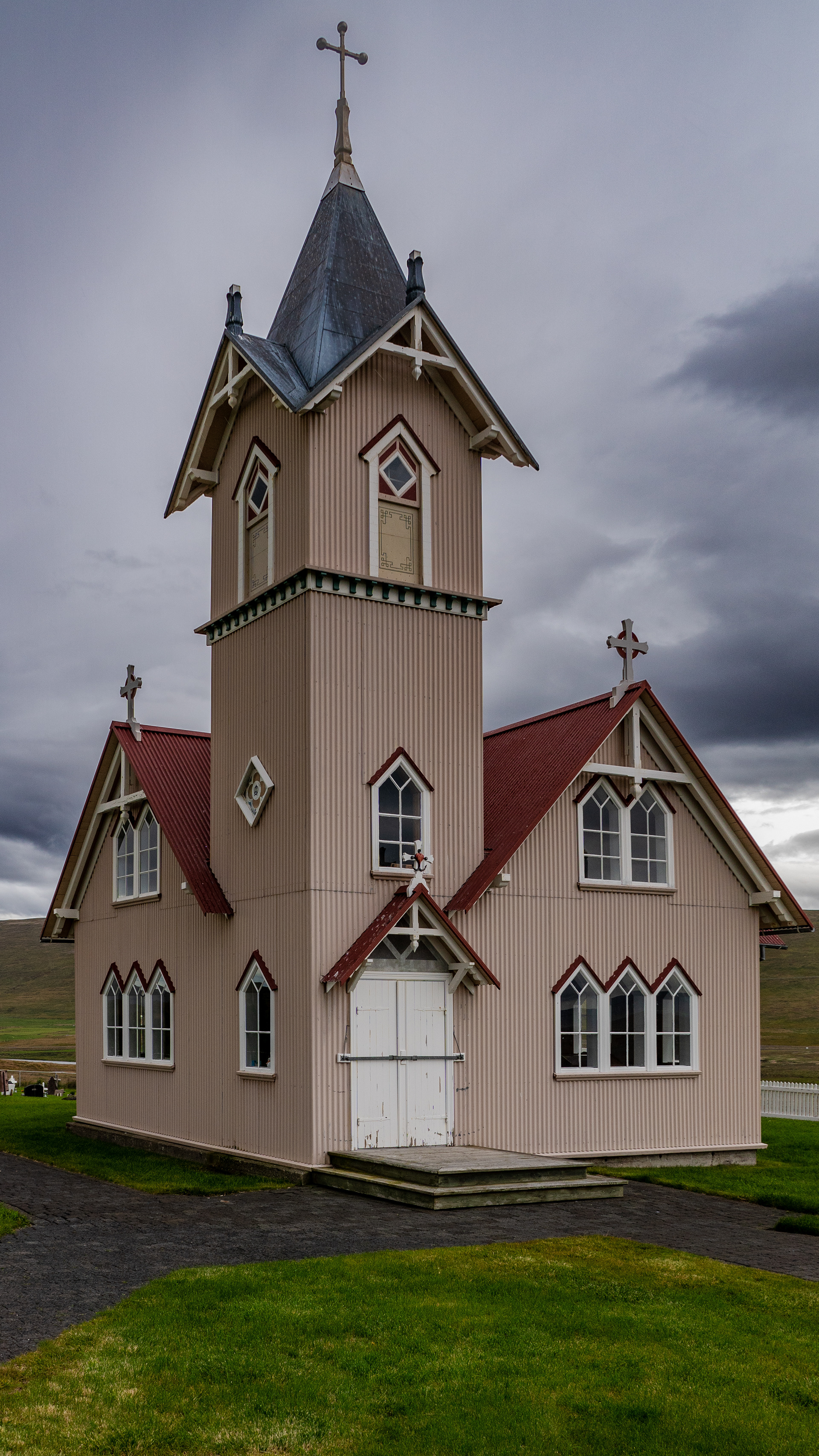 Nun mussten wir uns doch etwas sputen, für die noch anstehenden Aufräumarbeiten im Haus. Deswegen galt unser letzter Stopp nur noch einer weiteren Kirche kurz vor Búðardalur - auch wieder ohne Fotos bei Google Maps.