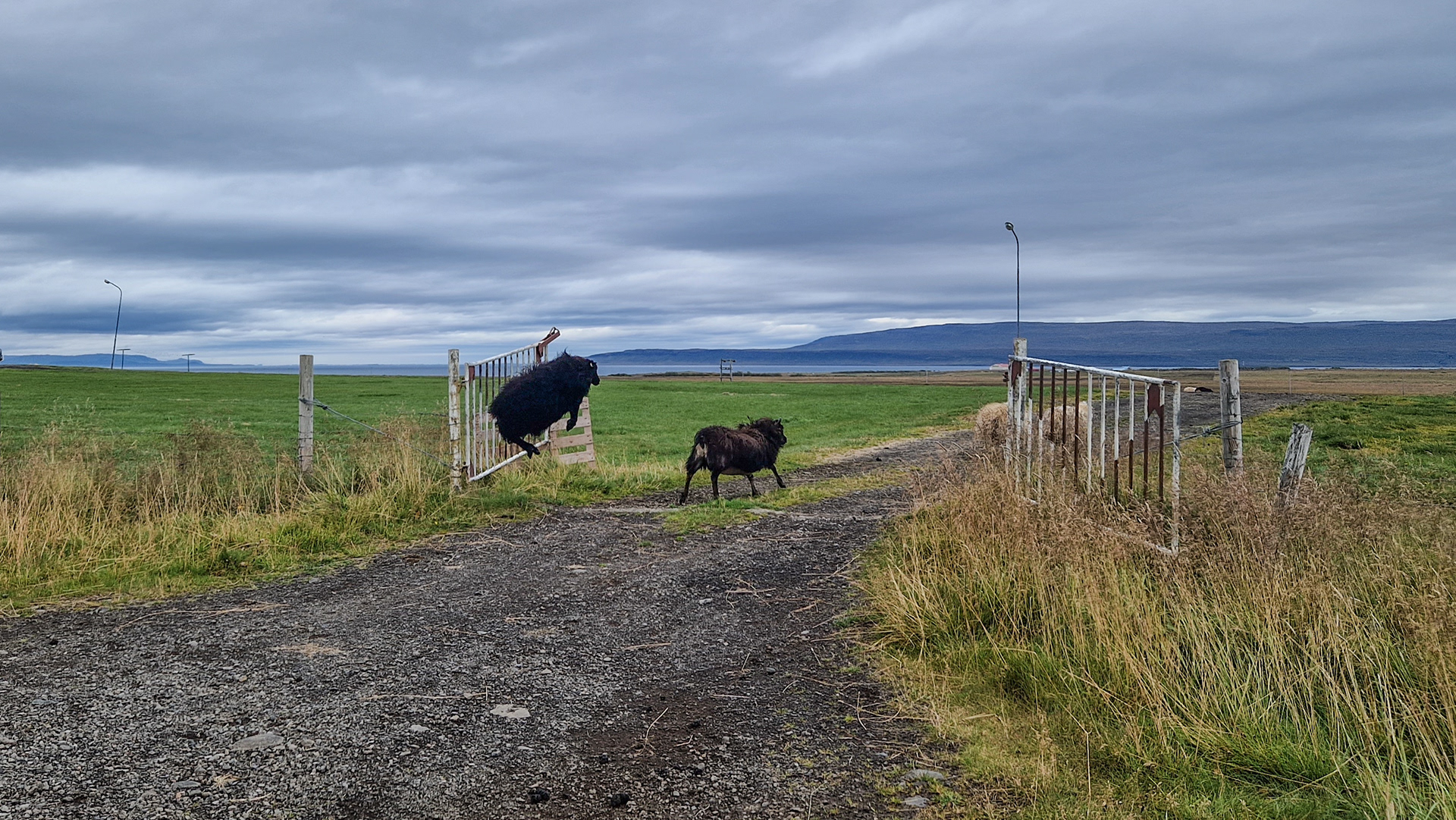 Und wenn es gerade mal keine Landschaft zu bestaunen gibt, sorgen die Schafe für etwas Unterhaltung...