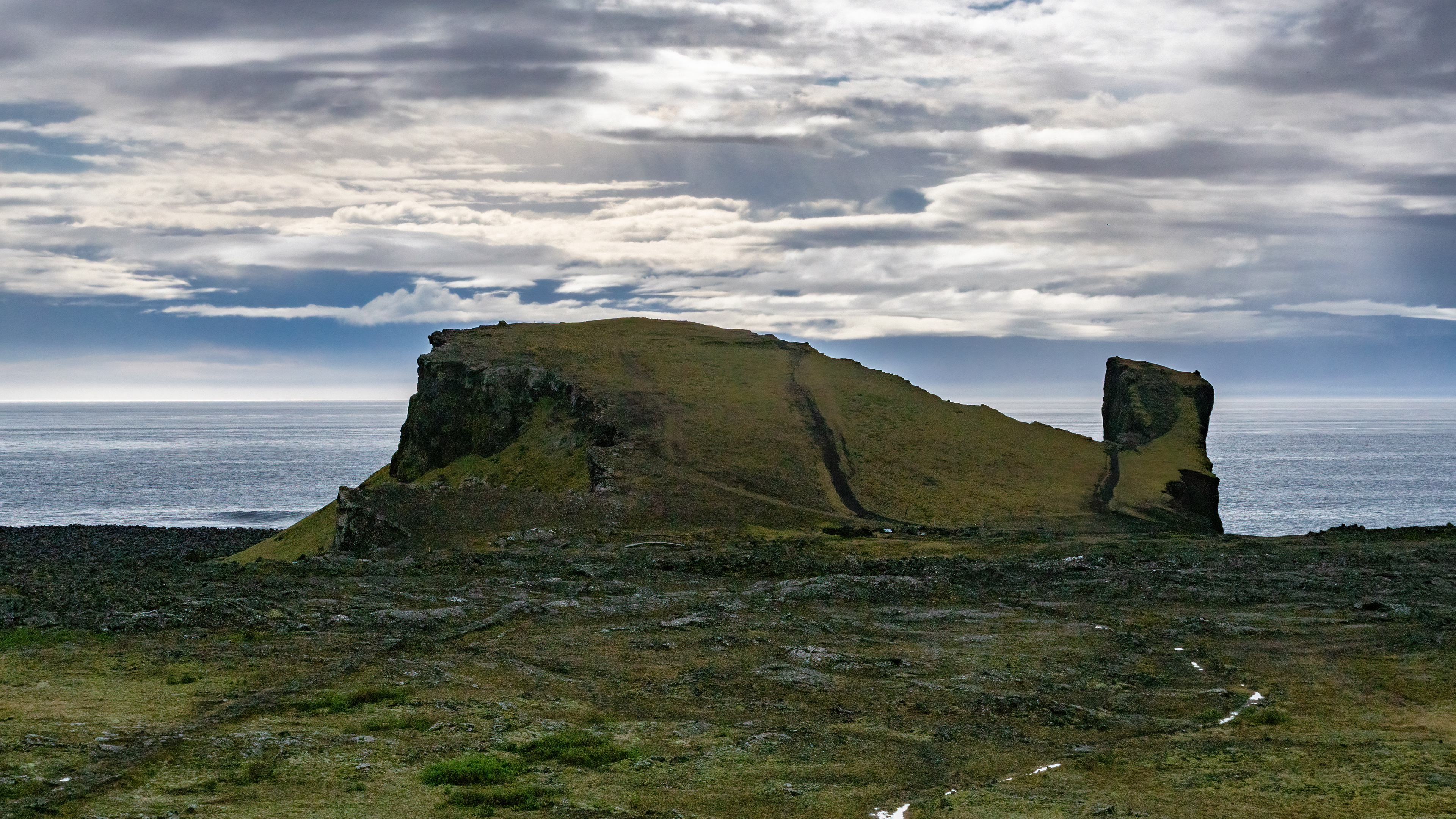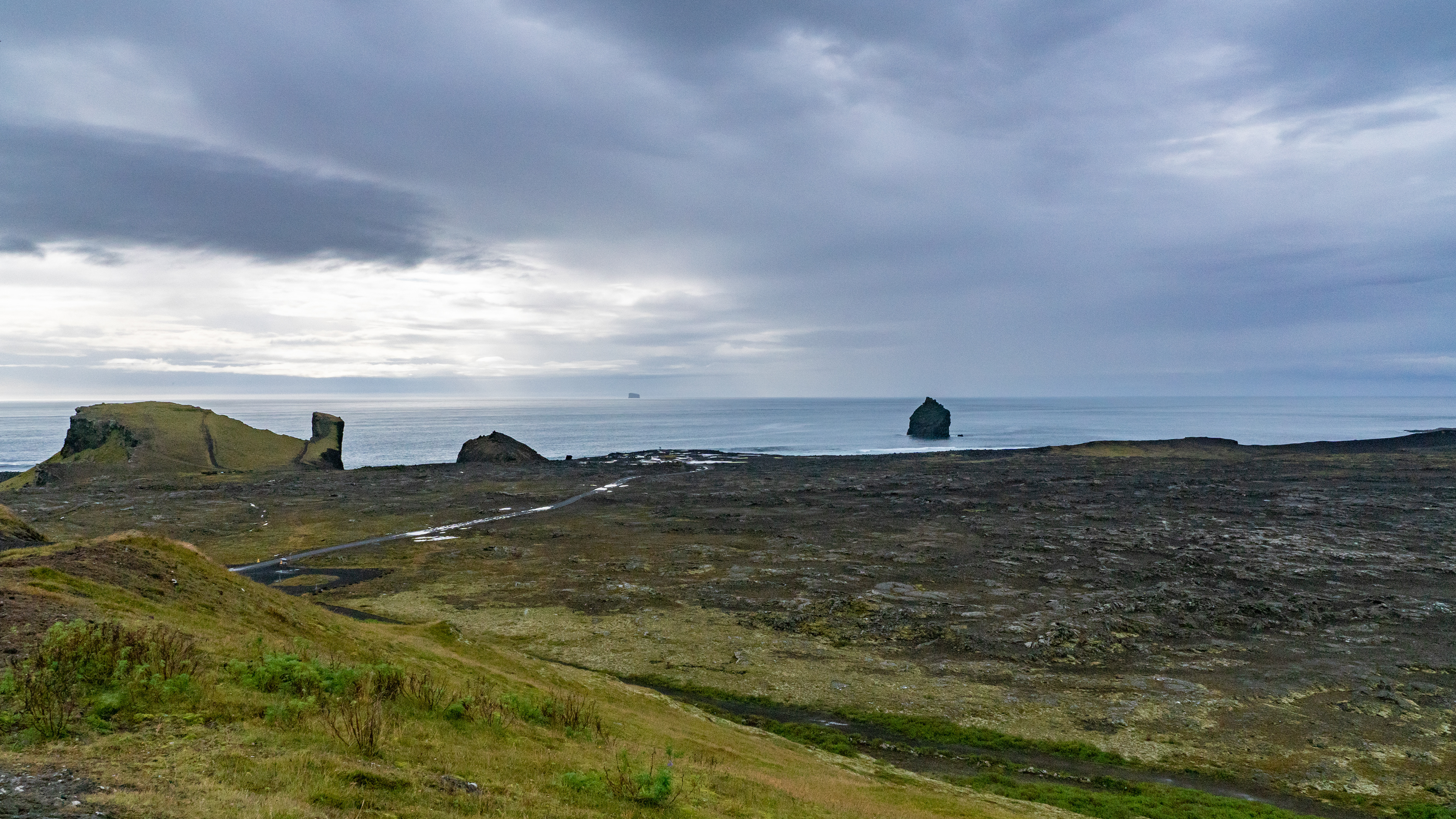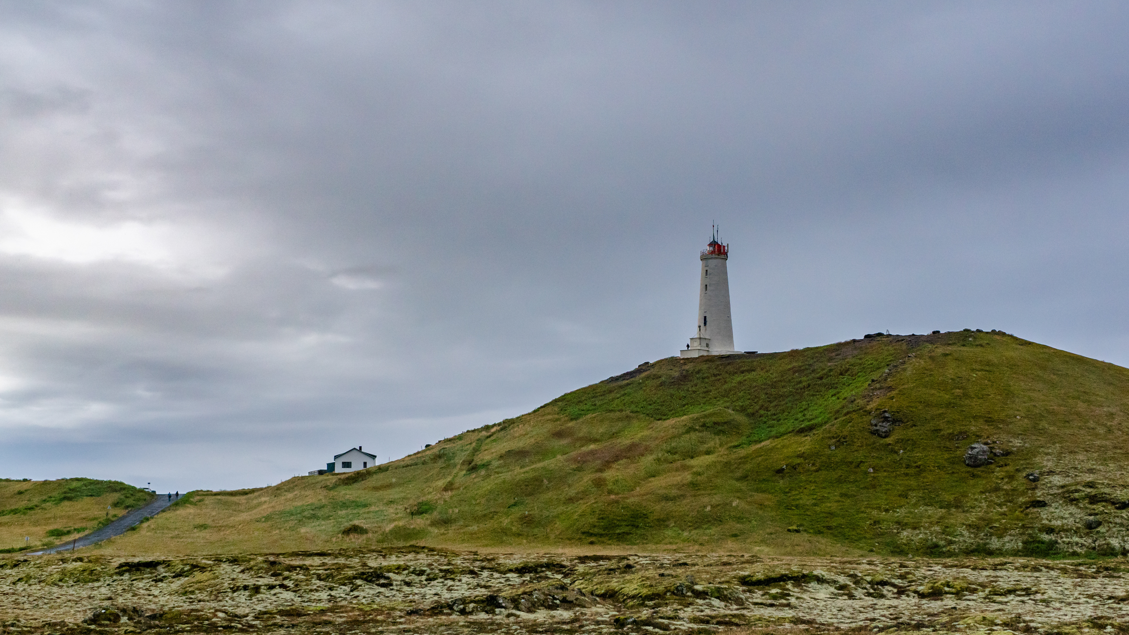 Für eine Wanderung zur Küstenlinie hatten wir dann beide keine Lust mehr, so blieb uns leider der Blick auf die Felsformationen des Valahnúkamöl verwehrt. Nur die der Küste abwandte Seite konnten wir vom Leuchtturm sehen.