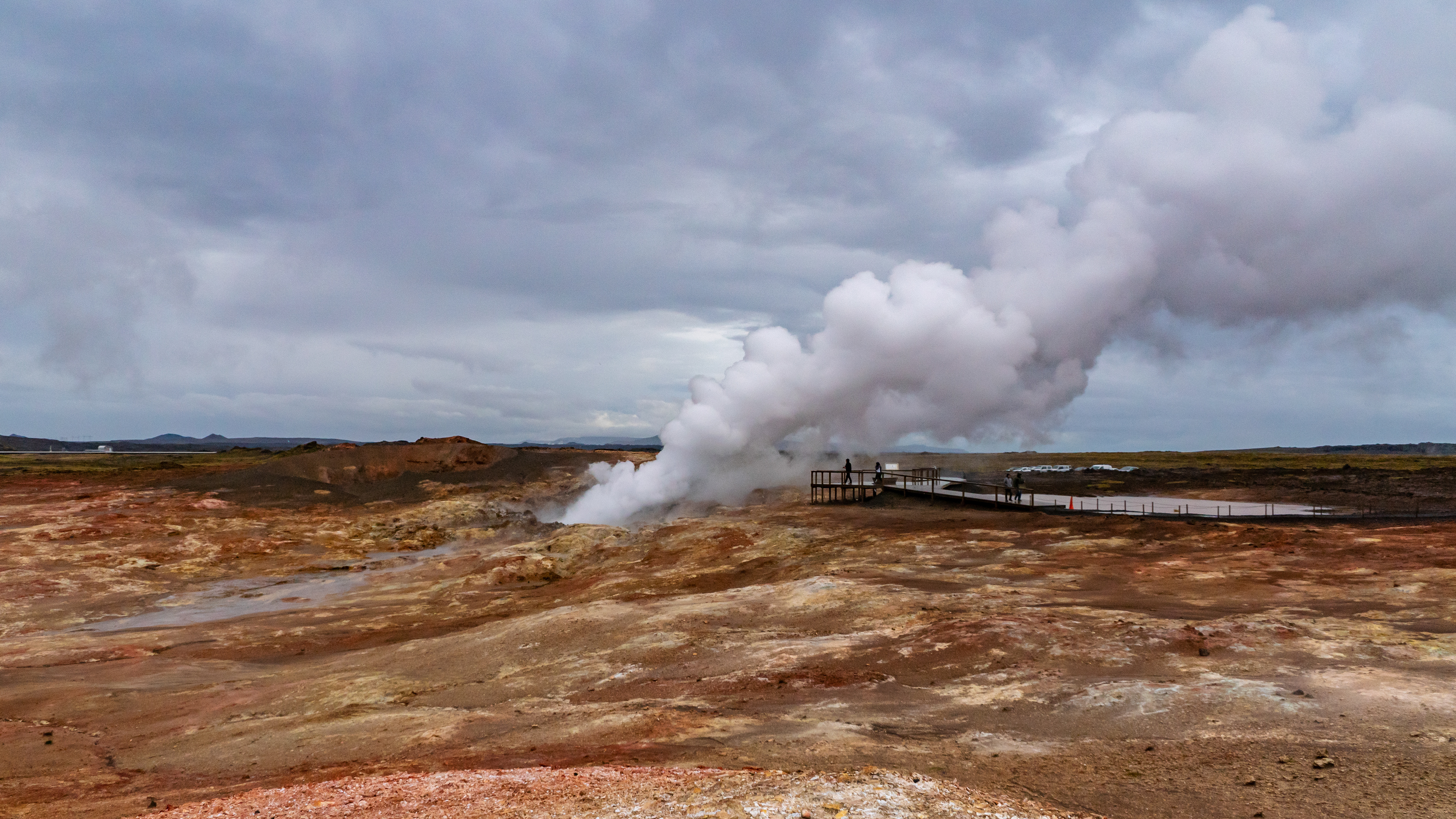 Die Thermalquellen am Vulkan Gunnuhver gehören zum den heißtesten Hochtemperaturgebiete im südwestlichen Island. Die Temperaturen unter den Quellen betragen über 300 °C.