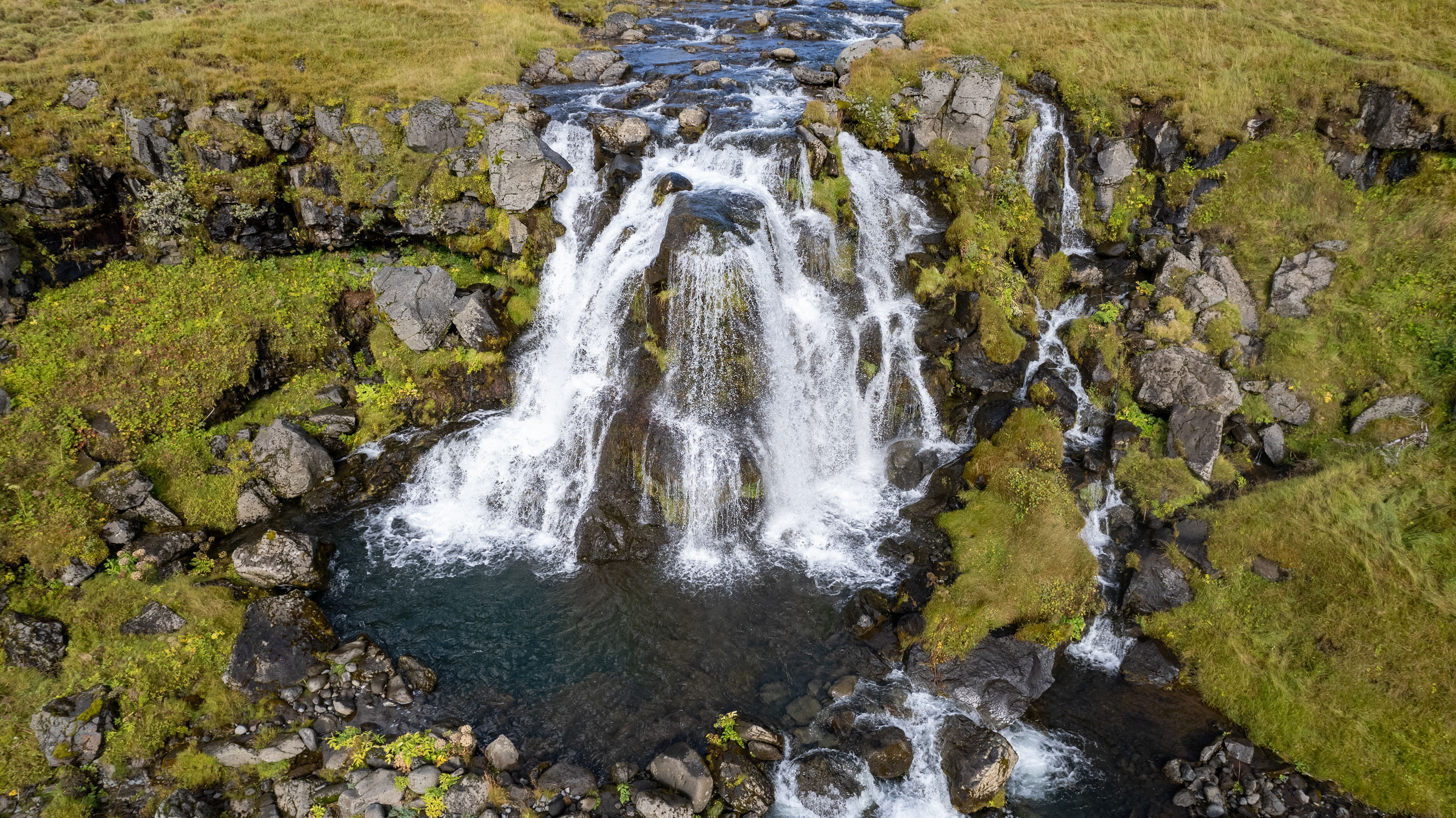 Zuerst kam der Þórðarfoss und dann der Gluggafoss (Merkjárfoss), beide fügten sich malerisch in die Landschaft ein.