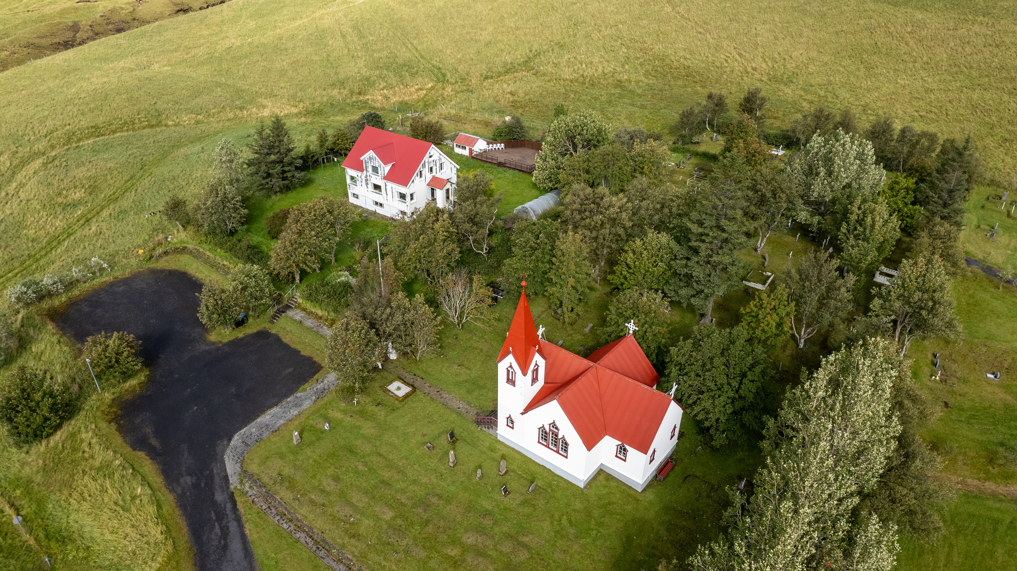 Zu diesen ungeplanten Halt kam weniger Kilometer später die Hlíðarendakirkja und der kleine Fluss, der mit einer Vielzahl von kleinen Wasserfällen durch die angrenzende Siedlung fließt.