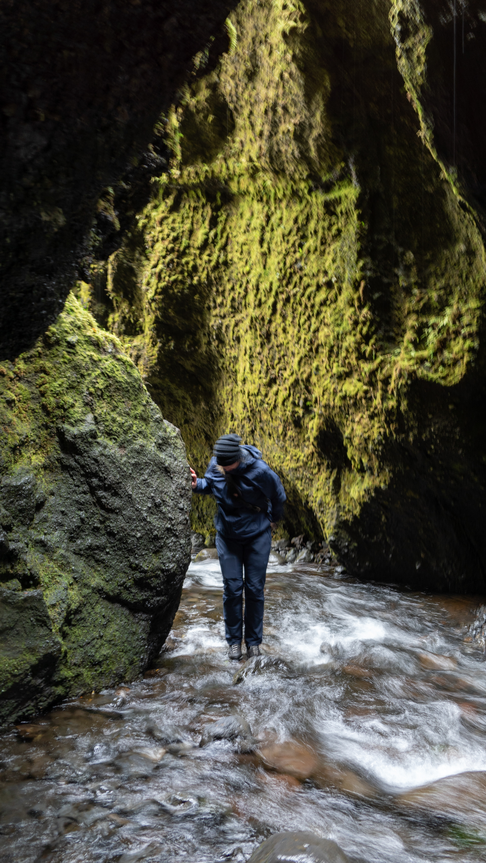 Durch den vorherigen Regen stand das Wasser hoch, einen Großteil des Weges liefen wir direkt durchs Wasser oder hangelten uns von Stein zu Stein, dem schroffen Fels entlang, kein Seil oder andere Hilfestellungen, nur eine marode und wackelige Brücke am Eingang der Schlucht.
