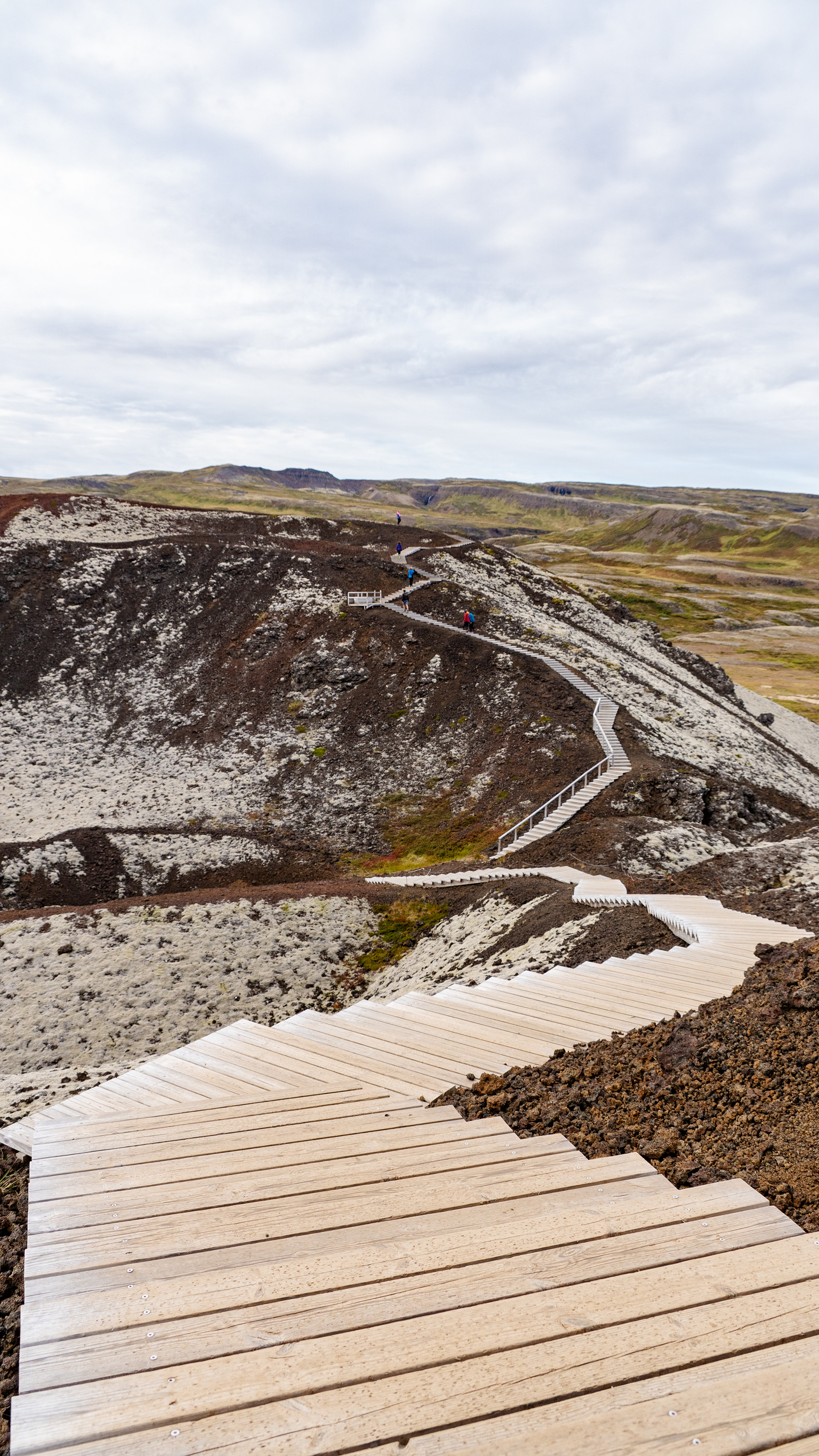 Der Aufstieg zum Grábrók gestaltet sich, dank der Stufen, deutlich einfacher als der lose Untergrund am Eidfell auf den Westmännerinseln.