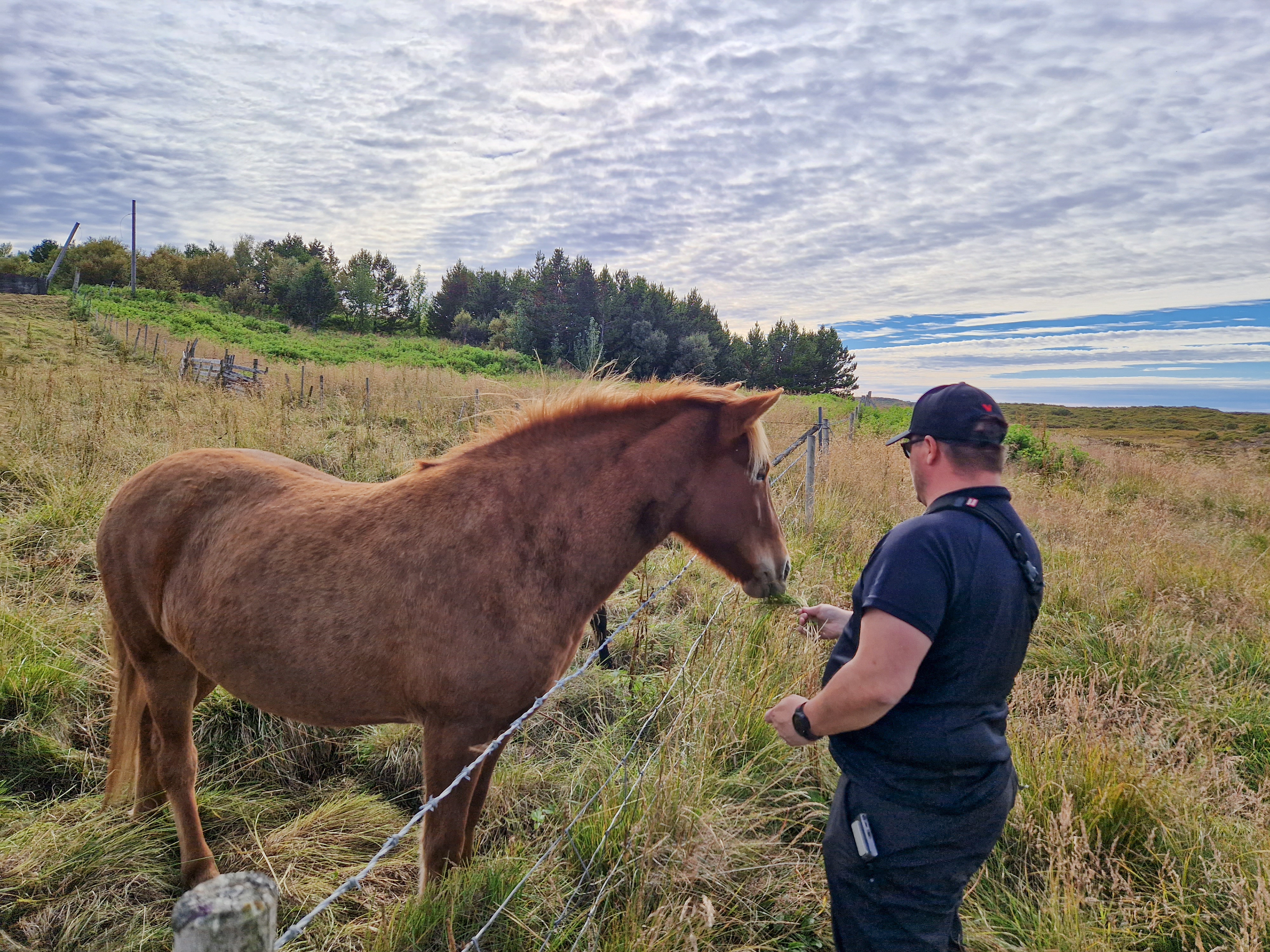 Bevor wir mit unseren geplanten Sehenswürdigkeiten weiter machen konnten, mussten wir doch endlich an einer Herde Isländer anhalten – streicheln und füttern – was man zu Hause halt nicht machen würde. Das liegt wohl auch daran, dass die Isländer sich eher auf Augenhöhe bewegen.