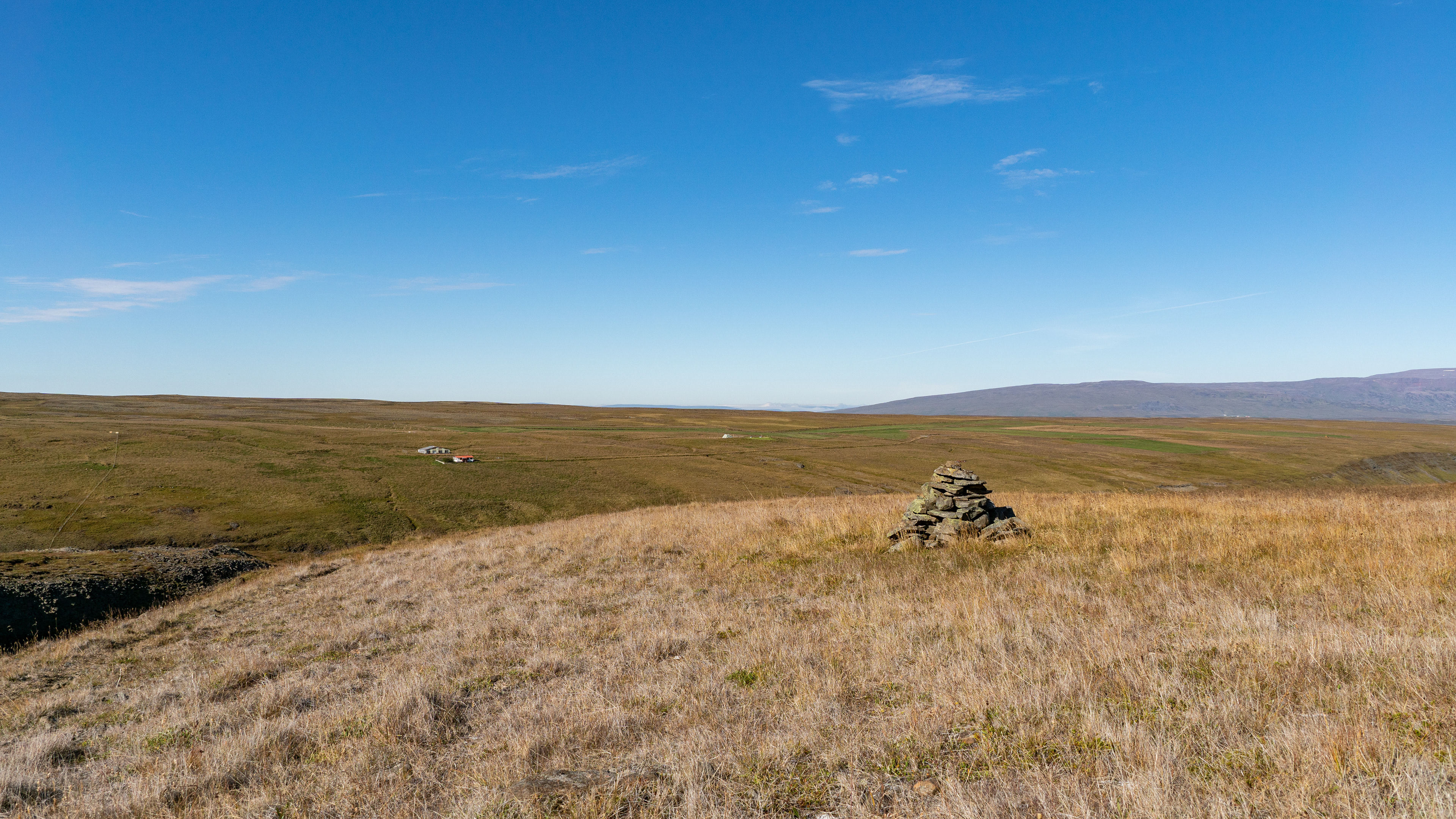 Ursprünglich hatte ich eingeplant, bei dieser Tagestour die ganze Region einmal an der Küste zu umrunde. Da es aber anhand der Markierung in den Karten nur wenig bedeutende Kirchen & Leuchttürme zu sehen gäbe, machten wir uns von hier aus auf dem Rückweg, um das Wikingerhaus Eiriksstaðir von Osten anzufahren. Leider war die 586 nach wenigen Meter gesperrt, die Tafel war nur auf isländisch, ohne Symbole. So konnten wir den Grund der Sperrung nicht deuten und mussten wenden.